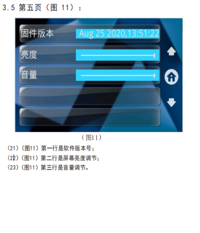 語音播放調節:可在屏幕上調節設備音量,可在屏幕上更改設備語音播報種類,可在屏幕上測試當前語音類;
